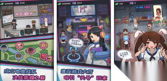 在游戏中,玩家就可以经营一家比较破旧并且有亏损的网吧。需要去进行规划,然后通过不同的营销方式去招揽客人。根据客人的兴趣爱好,轻松的组建电竞团队,招募顾客之后就可以参与比赛,然后获得奖杯和金币,到了后期就能不断的扩大网吧的规模。招募更多的员工,购买更多的设施。