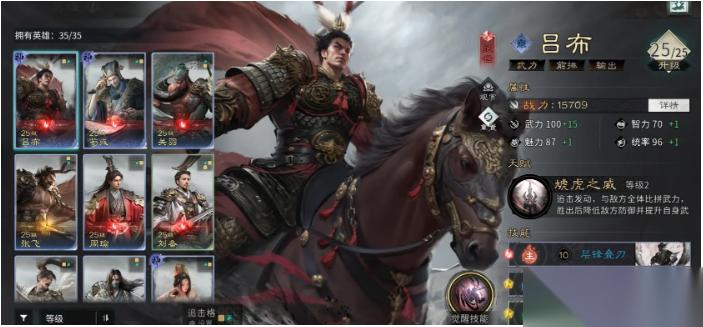 ①作为副将之一,吕布具有高武力数值和单体输出能力,频繁使用技能进行输出。