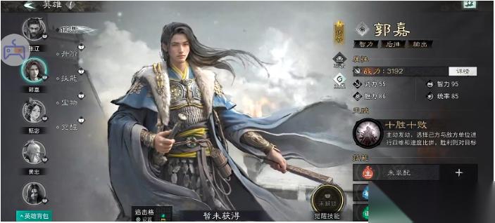 ①另一个副将,郭嘉具有谋略加成,能够提供稳定输出和支援。