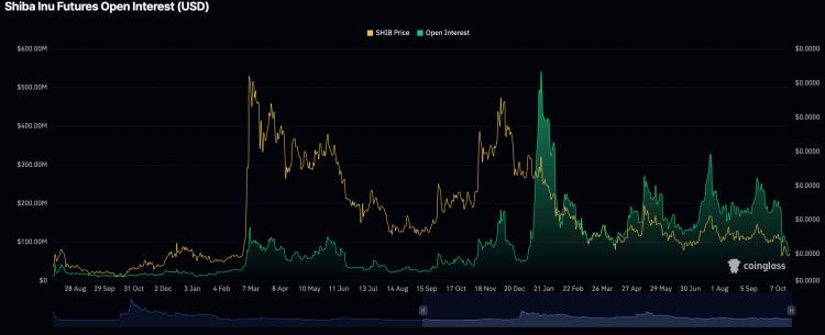 一个主要指标当谈到柴犬时是未平仓合约。这一追踪模因币未平仓合约总数的指标与价格一起大幅下跌,并达到了九个月以来的最低水平。