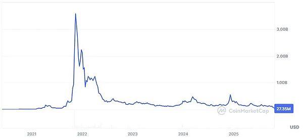 Kadena于2019年启动主网,构建了规模有限的开发者生态。据CoinMarketCap数据,2021年其估值一度接近40亿美元,此后却从高点暴跌逾99%。