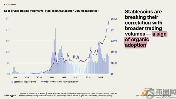 稳定币支撑年交易额达46万亿美元(调整后为9万亿美元),比肩Visa与PayPal;