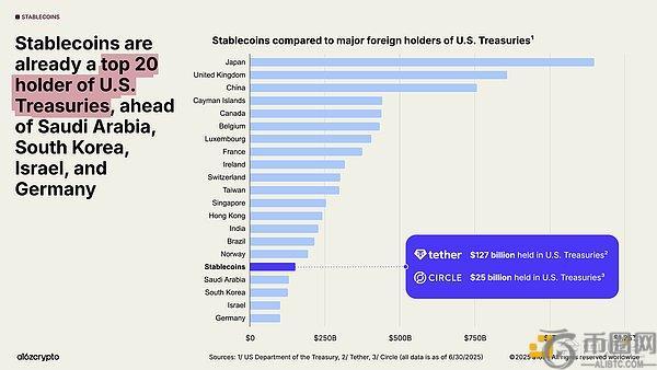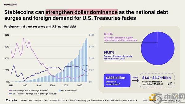 即便外国央行减持美债,稳定币仍在巩固美元的主导地位。