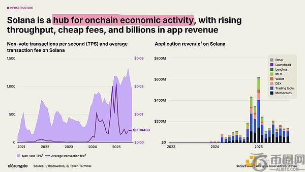 在区块链生态中,Solana已成为最突出的代表之一。其高性能、低费用的架构如今支撑着从DePIN项目到NFT市场的各类应用,其原生应用在过去一年产生30亿美元收入。计划中的升级预计将在年底前使网络容量翻倍。