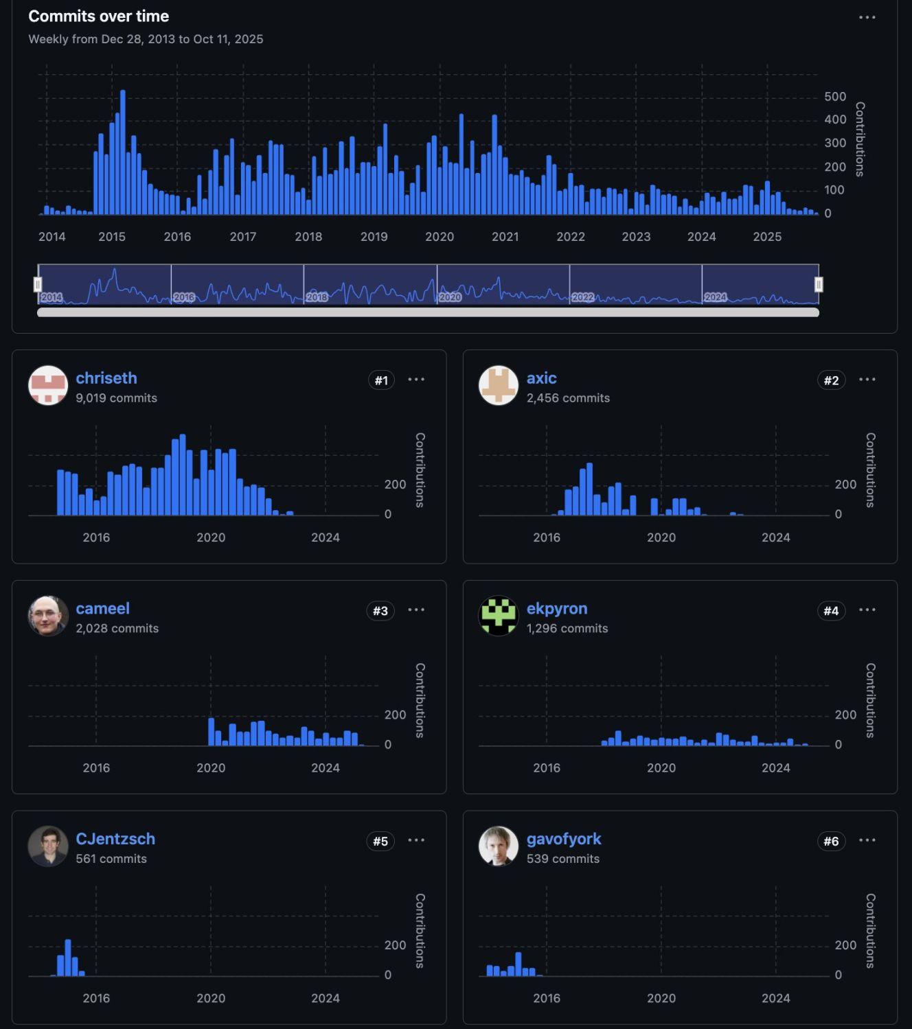 一周前,社区用户在 X 上晒出了一张截图并表示,Solidity 语言的顶级贡献者都几乎不再继续进行开发了。只有 Cameel 仍在不断提出新问题并推进技术进展,但似乎也仅仅是处于维护的模式。其认为社区需要投入更多资源来支持这门编程语言。