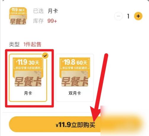 接下来选择早餐月卡,再点击【立即购买】就可以了