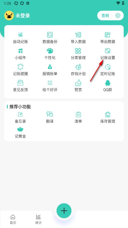 2.即可在打开的功能页面中,找到其中显示的【记账设置】功能,将其点击一下。