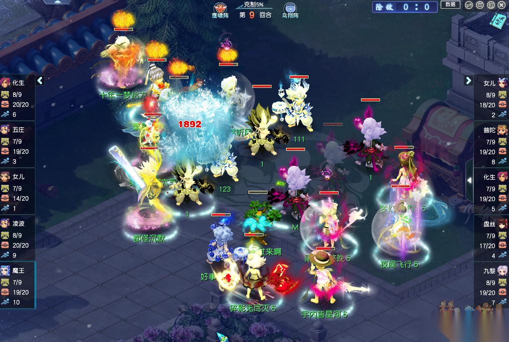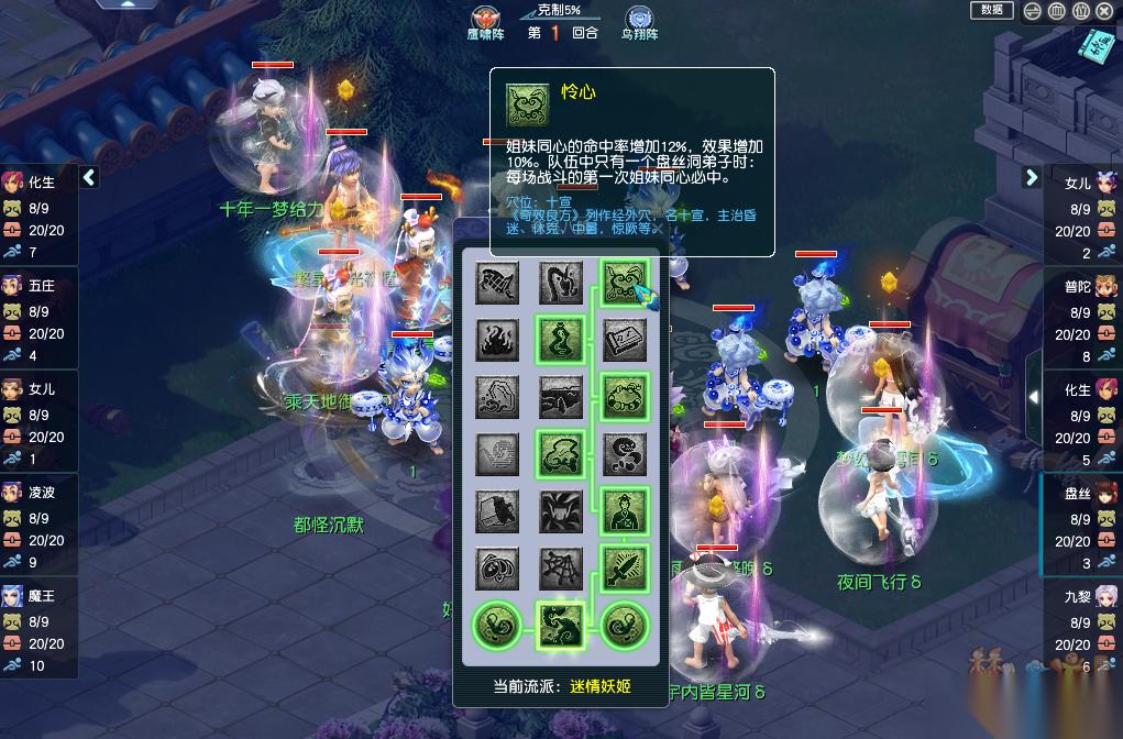 对战方【夫子庙】:女儿村、五庄观、化生寺、凌波城、魔王寨,“212”阵容。