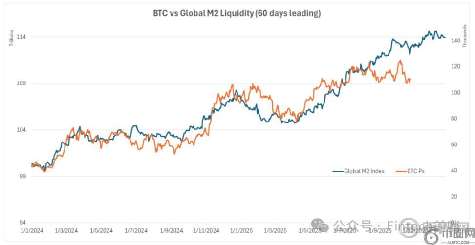 回答:市场普遍认为,黄金是传统「碳基世界」的成熟避险资产。而比特币则可以被视为「硅基世界」的价值存储新秀,而非成熟的避险工具,且目前仍具有较强的风险资产属性。我们观察到,在 2024 年初比特币 ETF 通过以前,比特币价格与纳斯达克指数相关性高达 0.9;在 ETF 通过以后,比特币价格与纳斯达克指数的相关性下降到 0.6,并明显开始跟随全球 M2 流动性,展现出和黄金类似的「抗通胀」属性。