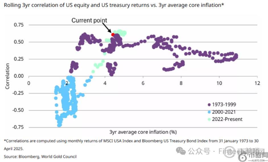 而一些大型长线投资机构的配置需求,也来自于」股债跷跷板「越来越多的失灵时刻:从 2022 年开始,股债出现更多正向相关性,与过去 20 年我们所熟悉的」股债 6:4 配置「叙事相背离: