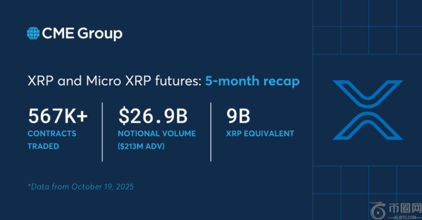 芝加哥商品交易所(CME)集团报告称,XRP期货需求激增,自推出以来交易额已超过269亿美元。