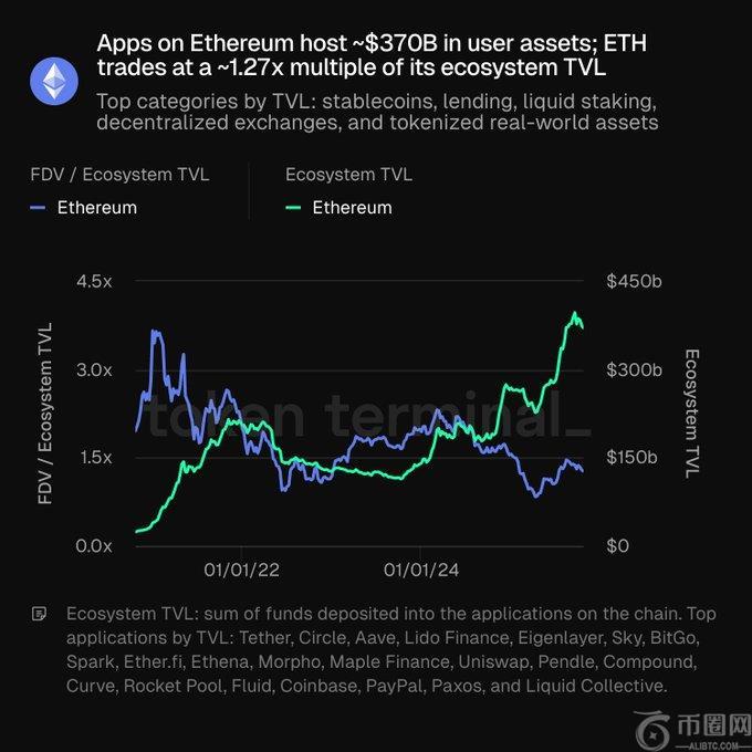 以太坊上的代币化资产和稳定币为其估值提供了坚实的基础,帮助维持市值的稳定性。