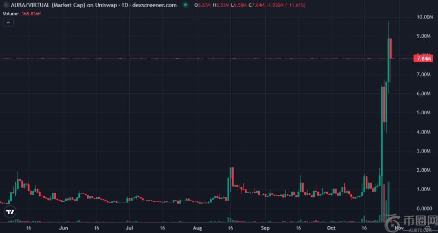 当前市值: AURA 市值昨日一度触及 1000 万美元,暂报 780 万美元。