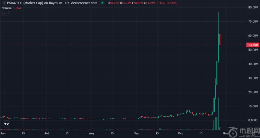 当前市值:PAYAI 市值昨日一度触及 7700 万美元,暂报 5300 万美元。