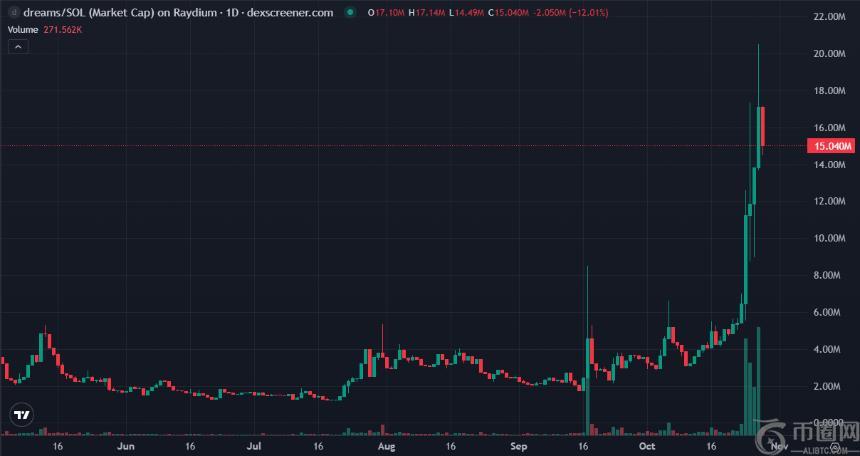 当前市值: DREAMS 市值昨日一度突破 2000 万美元,暂报 1500 万美元。