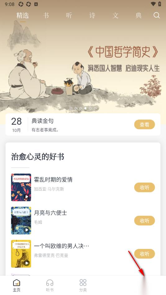 1.在我们手机上找到典读APP这款软件,在页面下方的位置选择我的选项,将其点击打开。