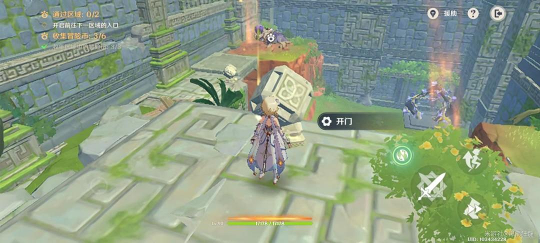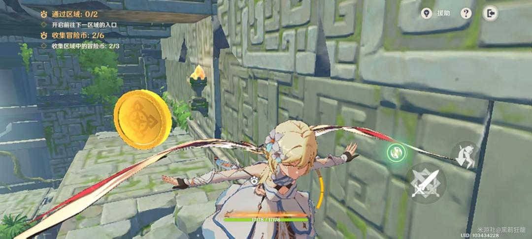 过关方法:旅行者从左边飞上去拿第一枚金币。