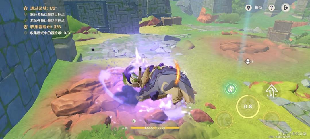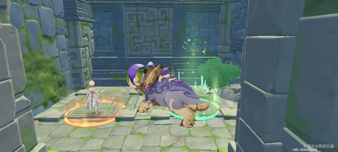 关卡特点:龙可以撞碎岩石,旅行者不能。