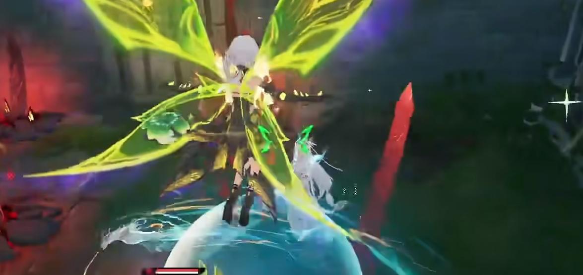 最主要的核心是“茧中幻景”,当角色迅速的往前移动之后,会留下一系列的幻影,这样会对敌人的视线造成影响,并且这些幻影可以减轻敌人的移动速度,所以当他们的移动速度被降低的时候,就可以迅速的释放出伤害,当达到破茧的状态之下会释放出追踪磷粉,这些都可以转化成伤害,对敌人造成暴击,所以无论是在茧中还是在茧外,都可以对敌人造成伤害,这是它最核心的玩法,玩家可以先掌握这种玩法,对后续的其他玩法也可以有一个铺垫。