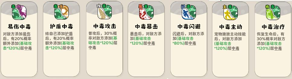 (1)触发类buff技能,普攻、暴击、闪避、添加易伤、添加护盾、恢复、宠物释放技能后添加中毒。根据主力流派点满对应技能。