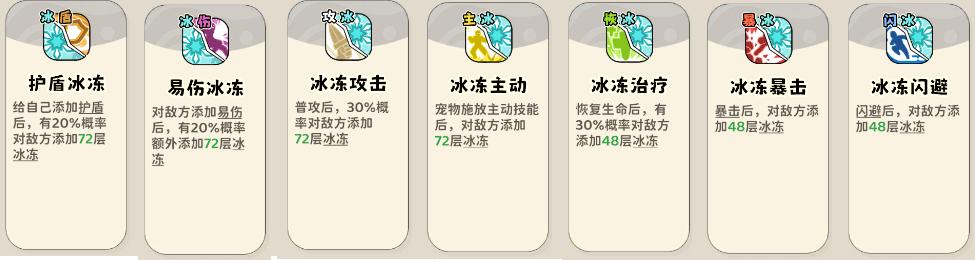 (1)触发类buff技能,普攻、暴击、闪避、添加易伤、添加护盾、恢复、宠物释放技能后添加冰冻。根据主力流派点满对应技能。
