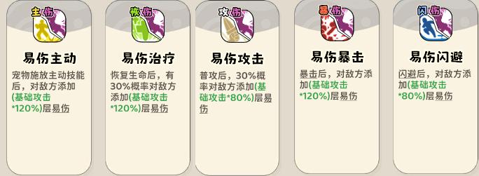 (1)触发类添易伤技能,普攻、暴击、闪避、恢复、宠物释放主动技能后添加易伤,根据流派点满。