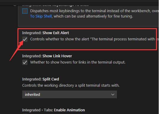 3、然后找到右侧中的"show exit alert",最后将其小方框取消勾选就可以了。