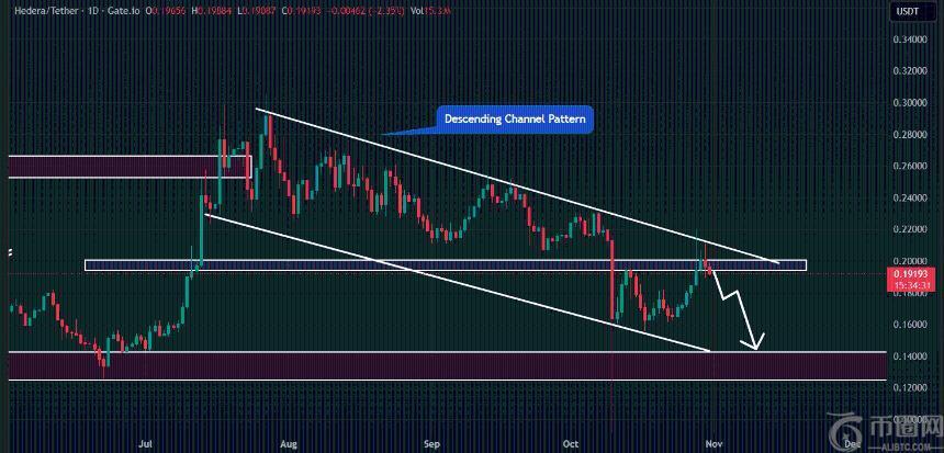 然而,若HBAR价格能够突破下降通道并在上方收盘,则其看跌前景可能发生变化。
