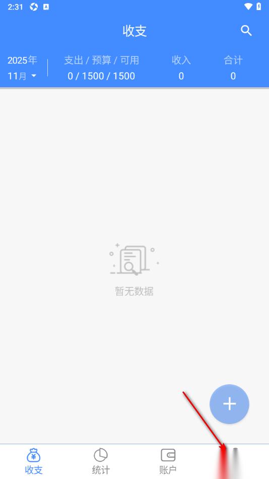 1.当我们进入到轻记账APP这款软件之后,在页面下方的位置选择我的选项,将其点击打开。