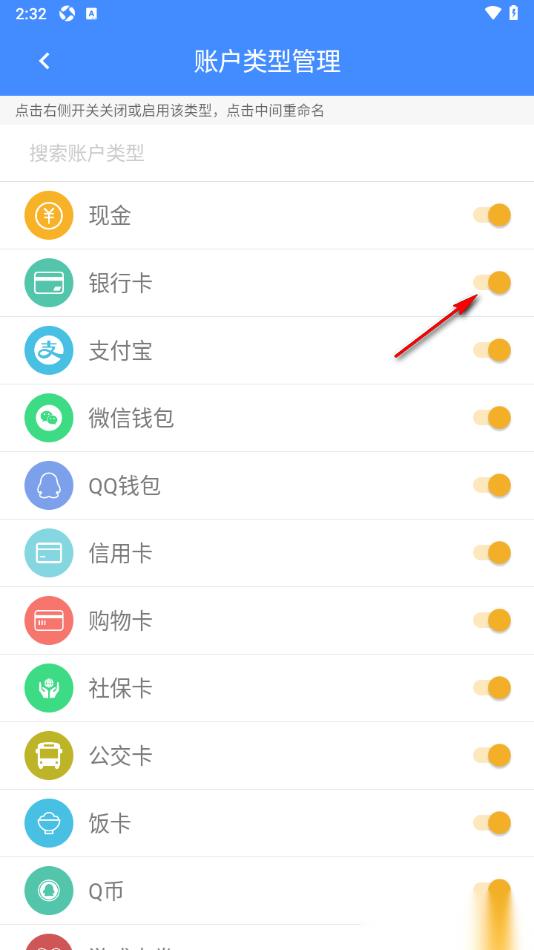 轻记账APP中开启银行卡账户类型是管理银行卡数据、避免数据遗漏的一种账单整合方式,轻记账APP作为一款功能齐全的记账神器,为用户带来了多种多样的常用账户类型来管理相关账单数据,其中银行卡是大家使用最为普遍的存放工资以及还贷款的账单类型,每天或者每个月都会通过银行卡收入账单或者是支出账单等,想要完善对该账户的账单数据记录情况,开启银行卡账单类型是非常有必要的,打开账户类型管理功能,开启银行卡功能选项即可,具体的教程方法已经展示到下方,用户可以来看看步骤。
