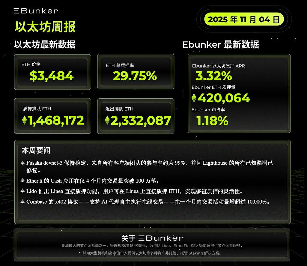 以太坊质押周报 2025 年 11 月 04 日