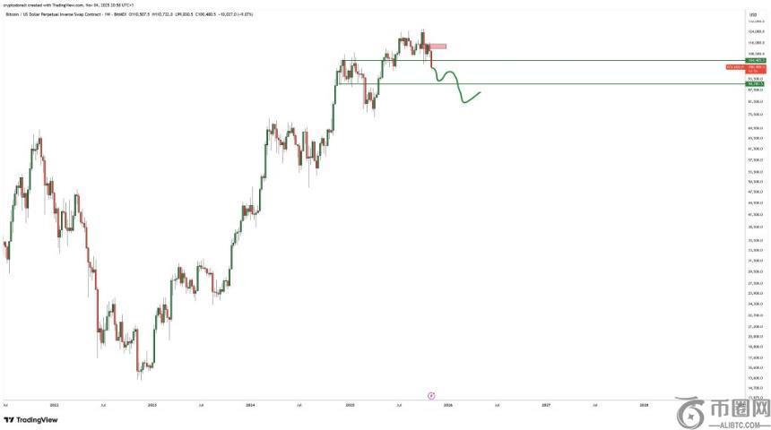 化名DonAlt的分析师表示,他认为比特币可能会在91,000美元附近的支撑位出现短暂反弹。