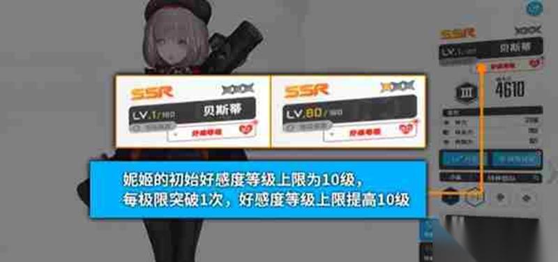 妮姬的好感度等级上限初始为十级,每极限突破一次,好感度等级上限提高十级。隶属企业为艾力席恩、米西利斯和泰特拉的妮姬,极限突破三星后好感度等级上限提升至最高。