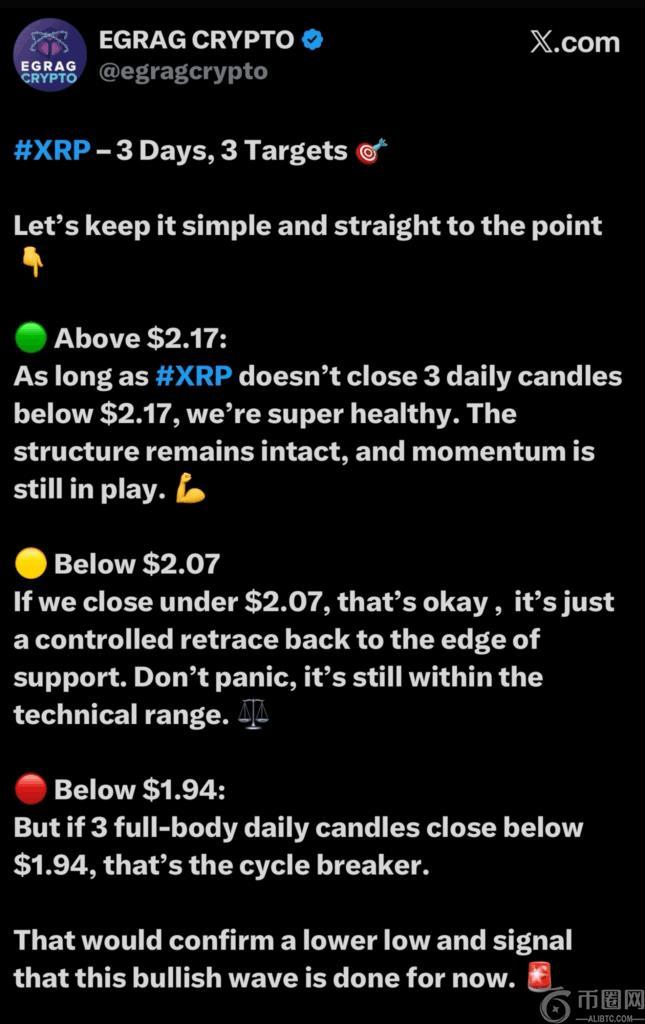 在此背景下,分析师 EGRAG CRYPTO 指出,如果 XRP 价格跌破 1.94 美元,则将确认该加密货币的周期性突破。