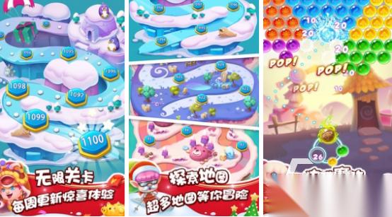 小伙伴们将来到非常神秘的海底世界,在亚特兰蒂斯当中完成泡泡消除,拯救精灵宝宝。有众多具有特色的魔法道具,比如彩虹泡泡,能够任意代替不同的特色颜色,还有炸弹泡泡,能够在相应的范围之内完成爆破,这些特殊道具让你完成高难度关卡时更加简单。有随机生成机制,每个关卡泡泡龙组合都是千变万化的,增强新鲜感。