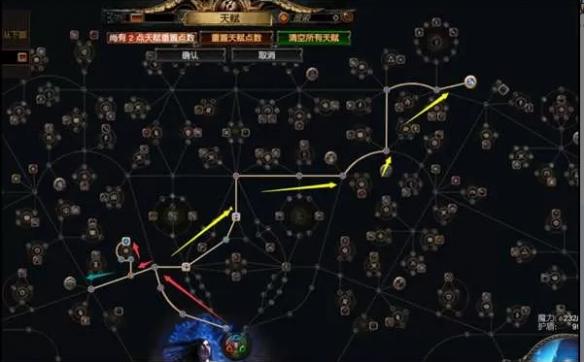 天赋点这样点,先红色,然后黄色,然后绿色,因为点了异能魔力,所以这里开始尽量找一些带护盾的装备,让护盾有100多用起来就没那么卡手了。