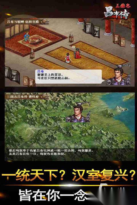 以三国历史人物吕布为主角,高清质的风格画面能够自由竞技,以武将吕布视角展现全新的三国故事。《三国志吕布传》根据玩家选择从而改变吕布的结局,究竟是复兴汉还是统一天下?游戏中可以领略到吕布的一生,丰富的剧情线,在新的版本中还设置了新出战的系统,以及更替了老旧的场景图,游戏细节提升了流畅度,给玩家带来更好的游戏体验。