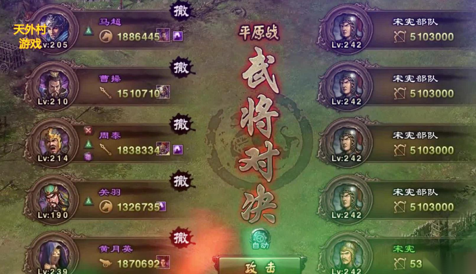 开局司马懿就必须能抵消敌方的第一次aoe伤害,如果没有成功抵挡就重开,不然后面很难打下去,在中期回合中利用刘关张的爆发将敌将打入残血,多带的战车可以降低敌方战车的护甲值,最后用周泰和神兽来进行收尾。队伍中的角色一定要先保证刘关张的攻击属性,如果没有霸下套就穿自己最好的攻击套装给他,然后手动操作战兽的出场时间来弥补伤害。