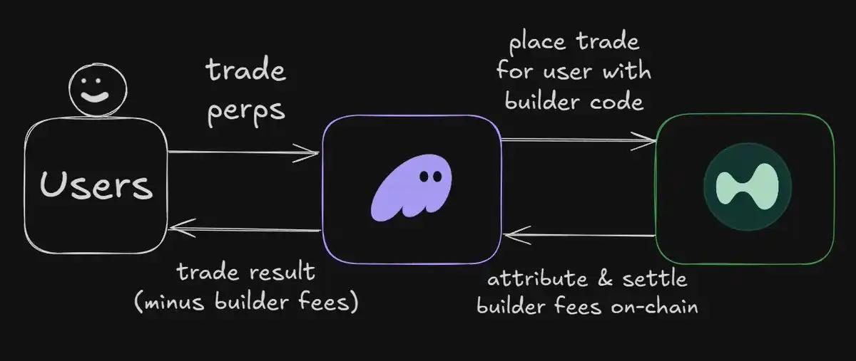 构建者代码实际上就是为应用开发者设计的推荐代码——应用可以通过它们为另一个平台(例如 Hyperliquid)创造交易量并赚取收入。