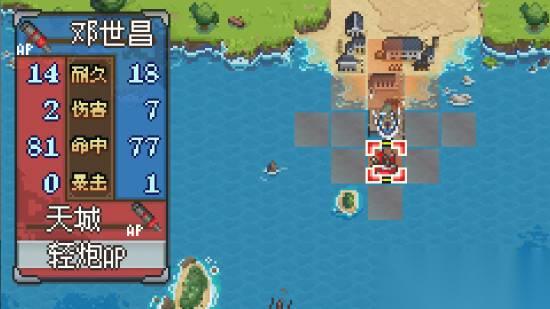 游戏采用回合制RPG模式,玩家需在方格状地图上指挥己方单位作战。根据地形和舰船特性进行战术布局,每回合可移动舰船、发动攻击、救援友方或使用道具等。合理制定攻击策略,将左右战局的胜负。