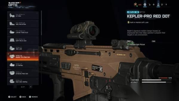 瞄具:安装在武器顶部的瞄准器或瞄准镜,用于提高命中率。该配件为通用配件,一旦解锁,它们可以与任何相同类型的武器一起使用(例如突击步枪)。