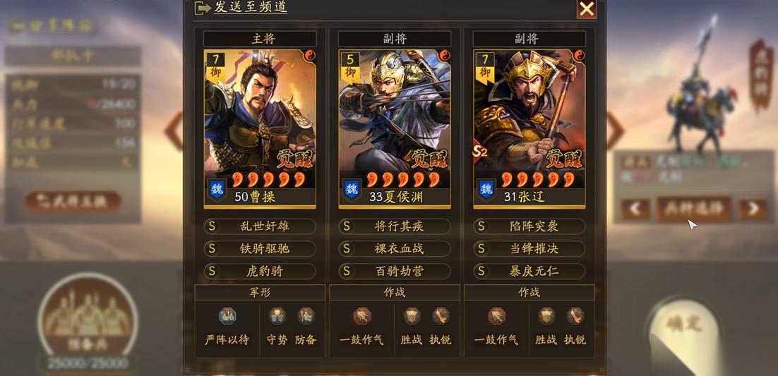 推荐使用突击类或增益型技能来强化爆发。核心输出武将如张辽常配当锋摧决和暴戾无仁,破防并附加混乱效果;夏侯渊则适合裸衣血战加百骑劫营,提升普攻次数和单体伤害。辅助位如郭嘉可带铁骑驱驰和虎豹骑,增加突击战法发动率,而曹操用暂避其锋等减伤战法来短暂保命。战法要聚焦于前几回合的伤害最大化,避免拖到后期。注意兵书搭配,比如一股作气配合胜战,进一步放大早期优势。爆头队虽强,但弱点也很明显,需要提前预防。它最怕缴械和控制类战法,如盛气凌敌或守而必固,这些能让核心武将哑火;减伤效果如暂避其锋或八门金锁阵也会削弱爆发力,导致秒杀失败。高规避或洞察能力,像左慈的金丹秘书或郭嘉的十胜十败,能让敌方主将免疫早期伤害。内战或遭遇速度更快的突击队时,如果对手抢先手,我们容易陷入被动。