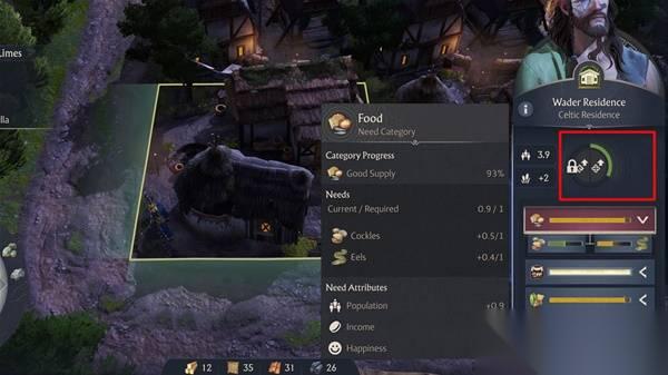 首先,你需要确保已经满足了该建筑的所有需求条。例如,对于一个涉水者住宅,你需要食物、公共服务和时尚度都达到1.0。你可以通过选择房屋来查看这些需求。