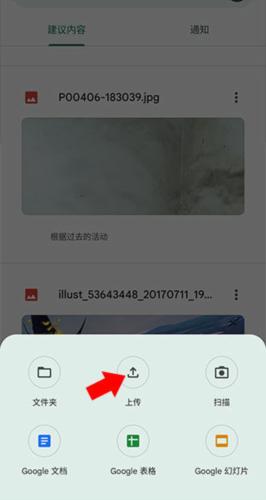 2、在打开的下方弹窗中选择选择【上传】选项并选择想要上传的文件即可