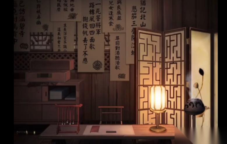 在通过拨算盘拿到铜钱之后,将铜钱放在右边柜子的赌盘上进行小游戏环节,第一个回合猜双正即可,完成能拿到金瓷瓶和鸟型钥匙。回到走廊上,来到左手边第一个三少爷的房间,用鸟型钥匙把房门打开,进入其中,点击柜子,把柜子中间的圆盘翻开查看,然后按照信息来调整左右两边摆件的位置。从上到下从左到右分别摆放木雕鸟、蓝瓶子、篓子、两只蟋蟀、绿瓶子、彩色鸟雕像,打开格子得到酒樽。
