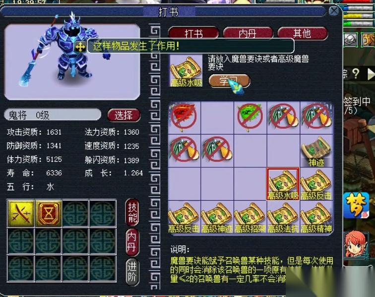 专属内丹不悔刀是鬼将的特色强化方向,其物理暴击率加成可与高级必杀叠加,进一步放大爆发潜力。搭配高连击技能时,连环内丹的增益效果会更为显著。需注意内丹与技能书的联动关系,例如高必杀套装的鬼将更适合狂怒内丹,而高连击组合则需优先保证连环内丹的覆盖率。低级内丹栏位有限时,需在阴伤、矫健、狂怒之间根据实际战斗场景取舍。