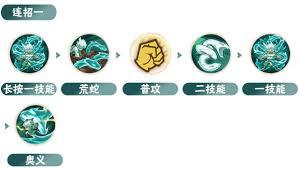 在实战中,若敌人处于远距离,我们可以先使用二技能起手,大蛇吐出后能迅速接近敌人。当大蛇攻击结束后,敌人可能会有短暂的硬直,此时马上衔接一技能突进抓取,再配合普攻打出连招。