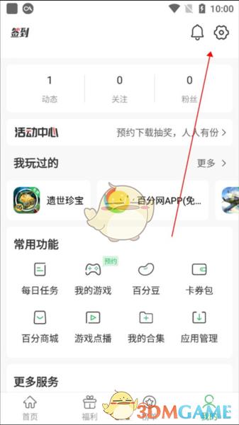 1、首先我们进入到百分网游戏盒的“我的”板块中,点击“设置”;