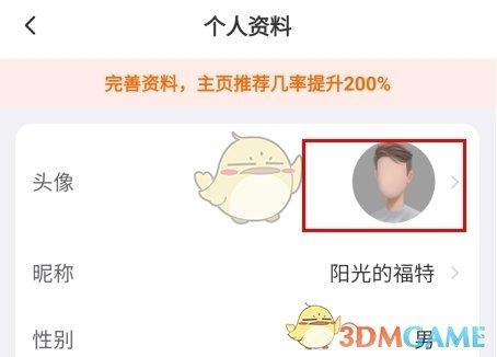 3、在个人资料页面中点击头像按钮就可以直接从相册中选择更换了。