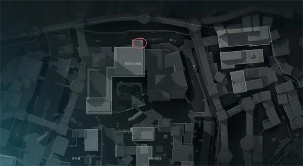 靠近边界小屋附近区域,沿小径前进后左侧即为密码门位置
